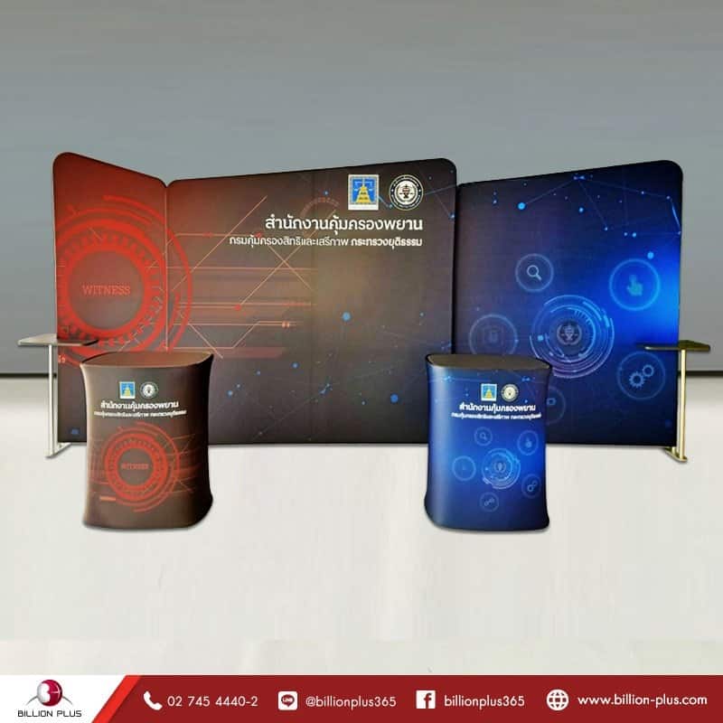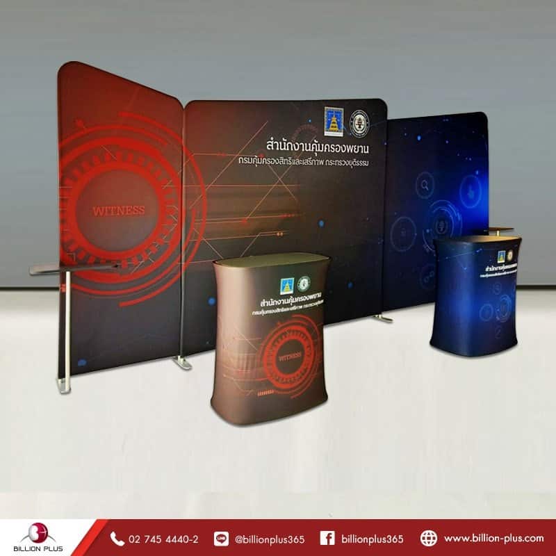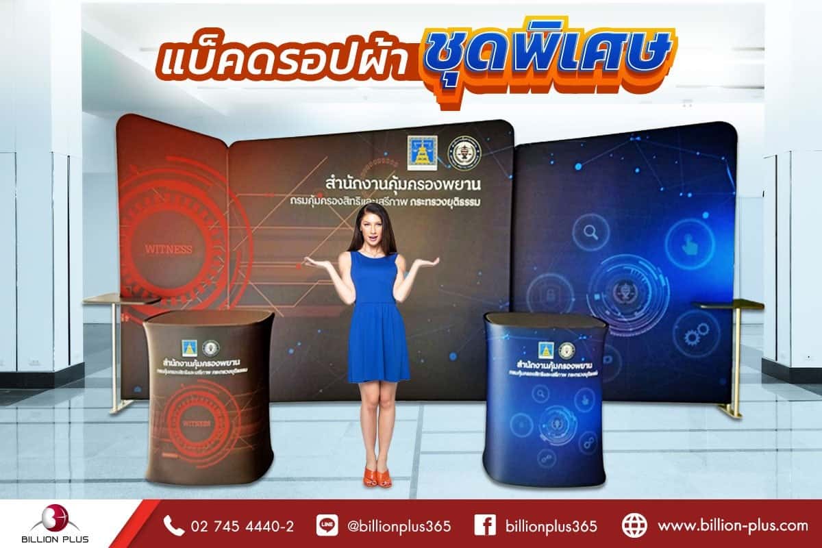 -ฉากแบ็คดรอบ FABRIC BANNER STAND แบนเนอร์หัวเฉียง งานพิมพ์ผ้าสวยหรู ภาพเนี้ยบ เรียบตึง